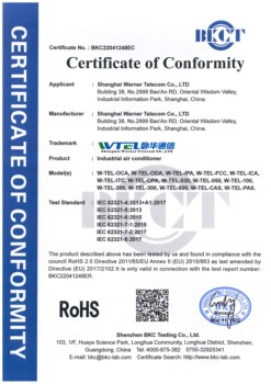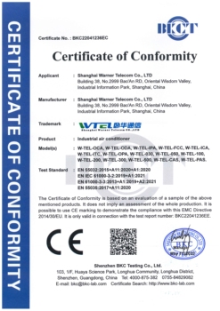 W-TEL de aire acondicionado 230VAC 5000BTU, armario de montaje en estante con capacidad de refrigeración de 1500W